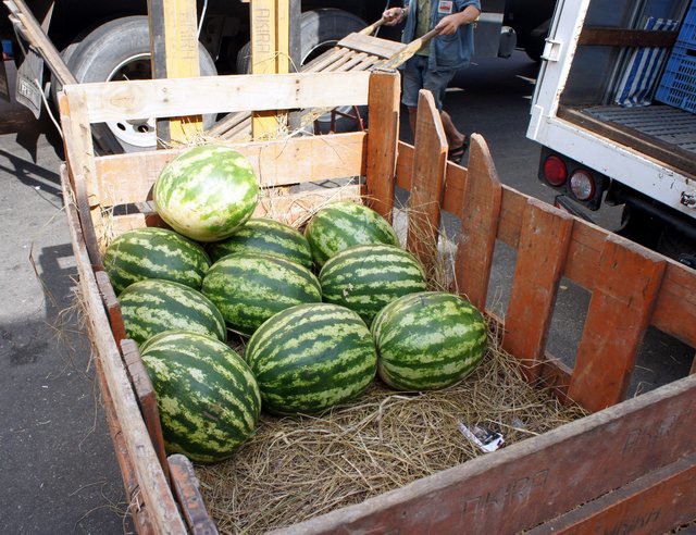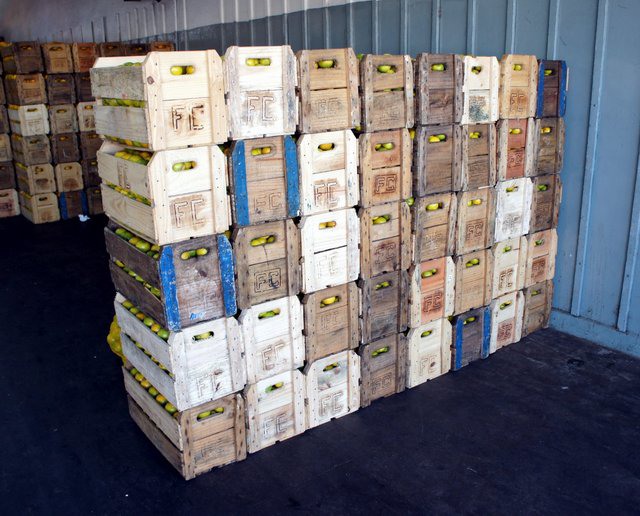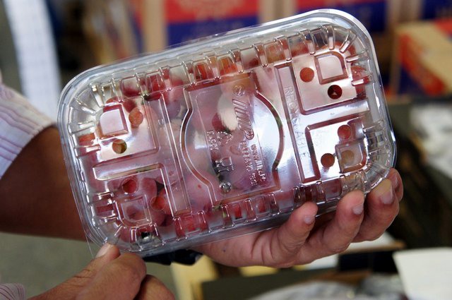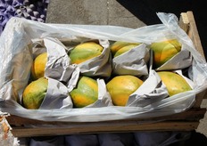 "Dal reportage fotografico, appare evidente il contrasto tra forme ancora "rozze" di presentazione della frutta (vedi qui) e le nuove tipologie di imballaggio, con moderne padelle (cartone/plastica/IFCO etc.), con i cestini/alveoli corredati da etichette, etc."