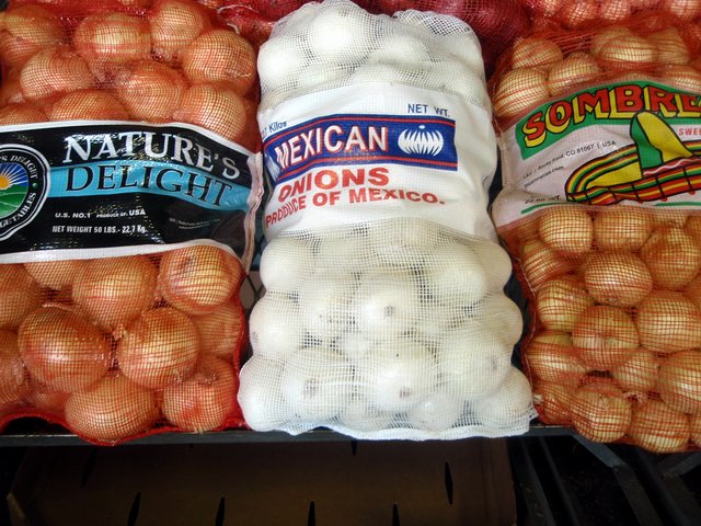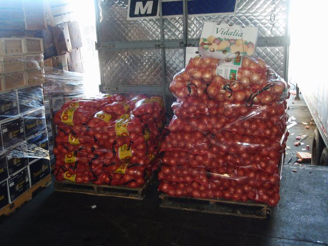 "Cipolle rosse "Italian Sweet" prodotte in California. "Pensare che 30 anni fa si esportavano a New York 50 container di Cipolla Rossa di Tropea e ora forse nemmeno uno...", osserva amaramente l'imprenditore che ha scattato questa foto."