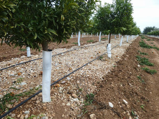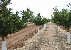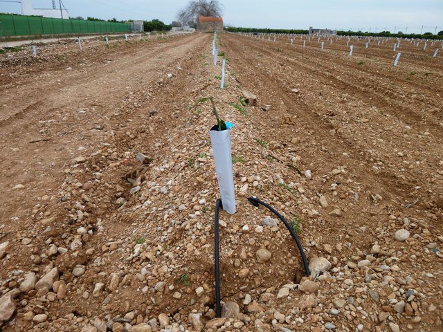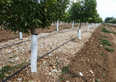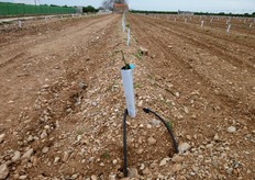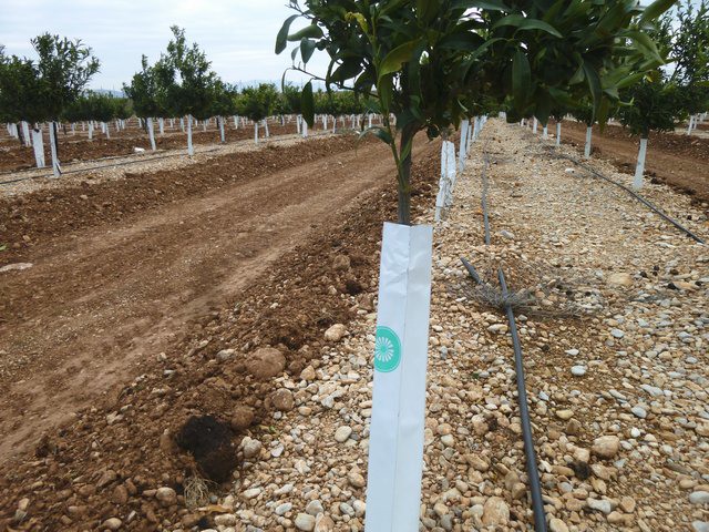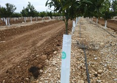 "Copertura del tronco, a partire dal momento del trapianto delle piante, con speciali "shelters"."