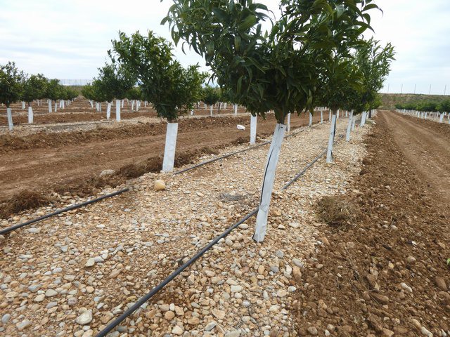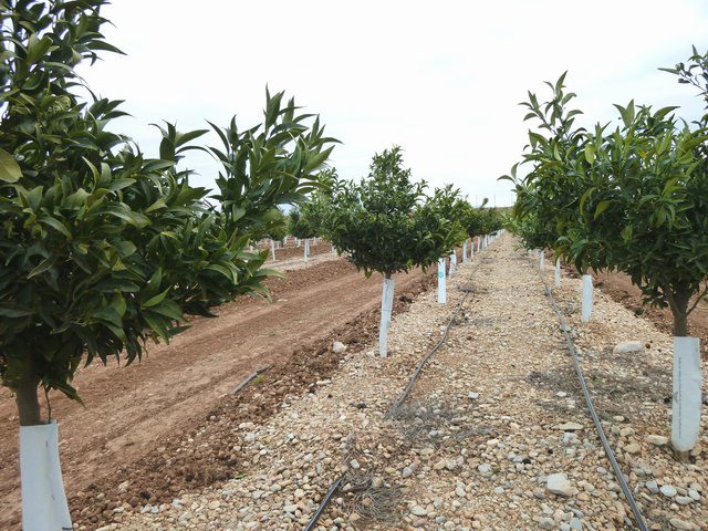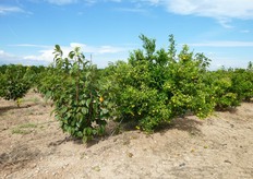 "In foto, un impianto di clementine "Clemenrubi" consociate con piante di kaki "Rojo brillante". Il kaki andra' a sostituira' completamente l'agrume dopo alcuni anni."