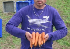 Dott. Giuseppe Brafa dell'azienda Colle d'Oro con un mazzo di carote Natuna F1.