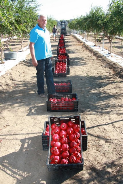 "E' cominciato a settembre 2013, presso l'azienda Cairo di Copertino (LE), tra i fondatori del consorzio "Pomgrana", il primo raccolto delle varieta' precoci di melagrane. In foto, Uzi Cairo."