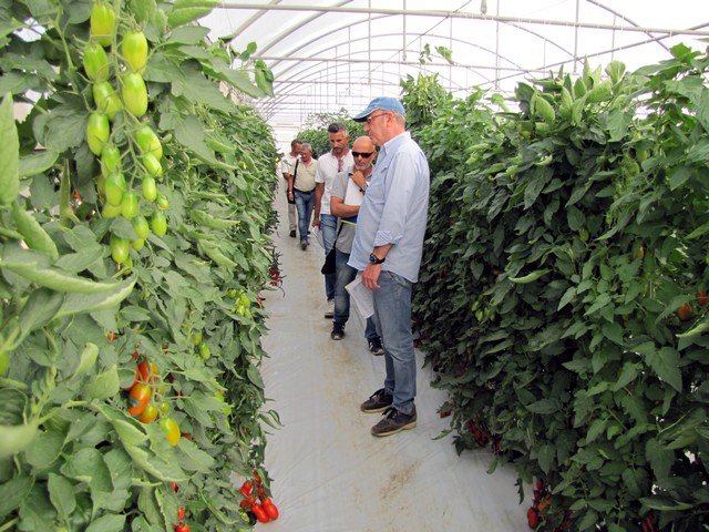 Un momento della visita alle colture in serra trapiantate lo scorso fine aprile presso la stazione sperimentale Med Hermes di Ragusa.