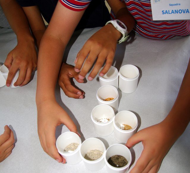 Bambini che cercano di associare i semi all'ortaggio giusto.