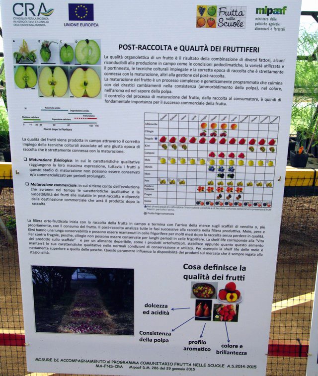 Il CRA ha inoltre realizzato una photogallery didattica che e' il prodotto scientifico divulgativo di un comitato tecnico di esperti. Si tratta di 12 poster in cui vengono affrontate diverse tematiche, dalla biodiversita' alla qualità post-raccolta dei frutti. Il materiale e' disponibile in 4 lingue: italiano, inglese, tedesco e sloveno.