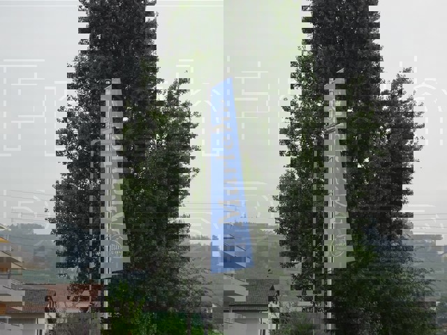 Impianto di irrigazione sopra chioma, necessario in caso di brina primaverile in fase di fioritura. L'acqua va a finire sul fiore e gela; congelando si libera calore. Quest'estate e' stato usato anche per irrigare, visto il caldo eccessivo.