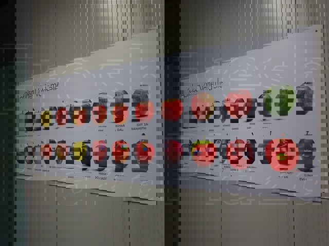 Le varieta' Fuji, Pink Lady®, Braeburn, Granny Smith, Red Delicious, Jazz® e Kanzi® costituiscono la parte restante. In foto: l'arrivo del gruppo in sede.