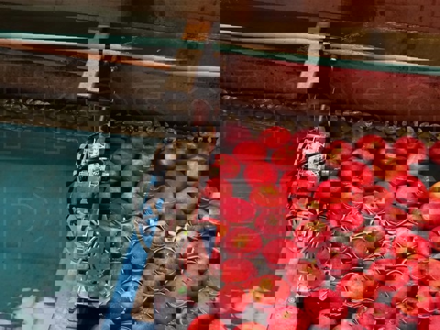 Le mele vengono portate nei magazzini della cooperativa direttamente dai produttori. Ogni partita viene pesata, numerata e portata in cella di conservazione.