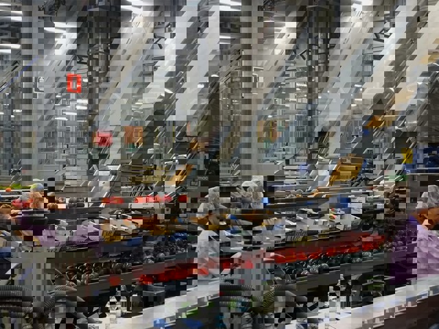 Ogni linea, delle 11 disponibili, lavora il prodotto per un determinato imballo.