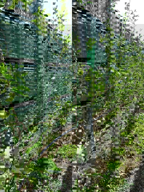 Impianto al primo anno. Le caratteristiche di coltivazione sono le identiche dell'impianto precedente, ma come si puo' notare non sono presenti frutti. Molto dipende dalla pianta che si riceve dal vivaista.