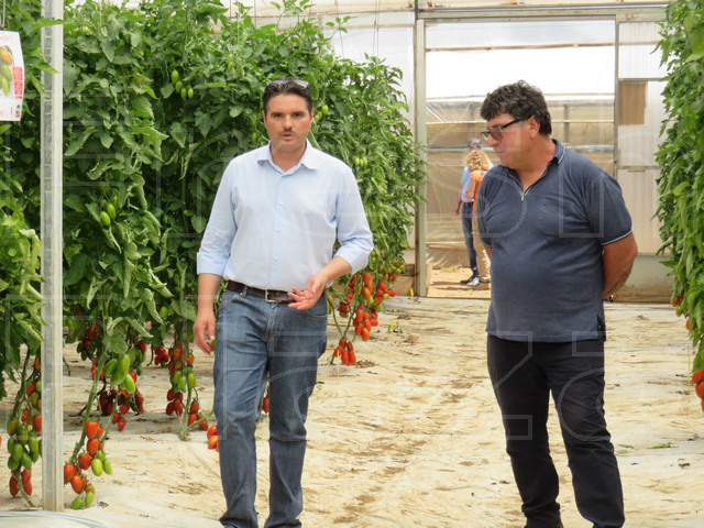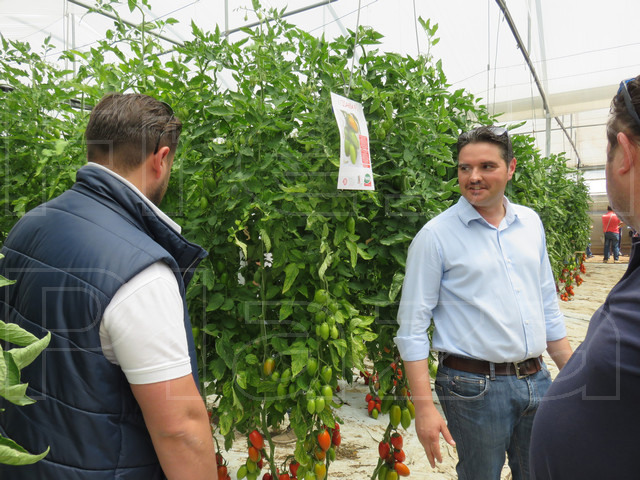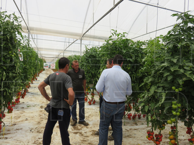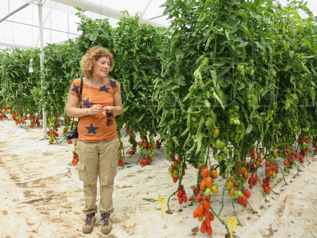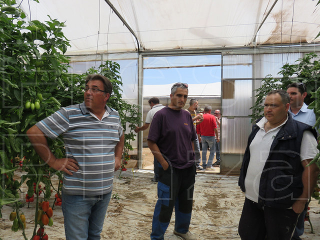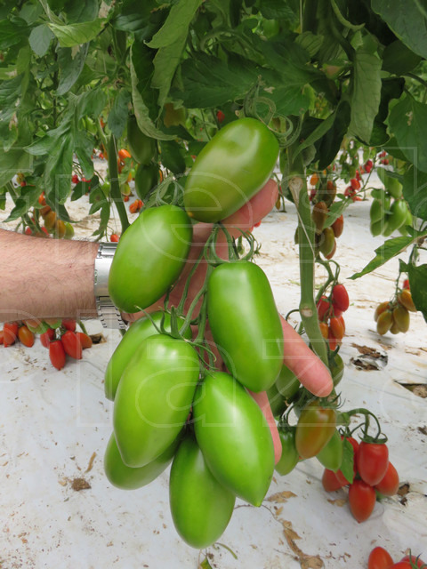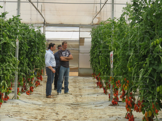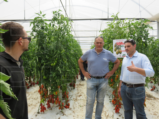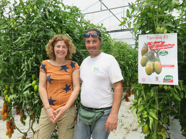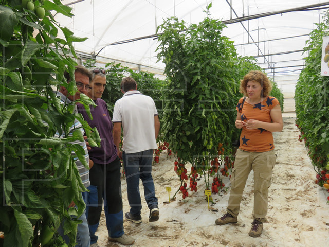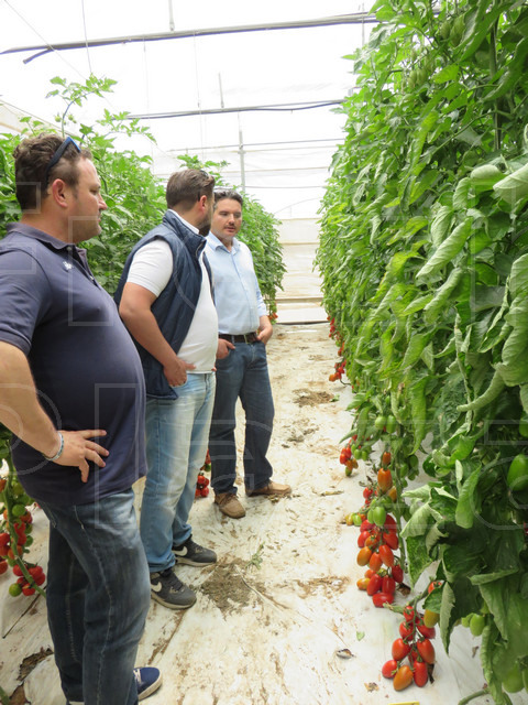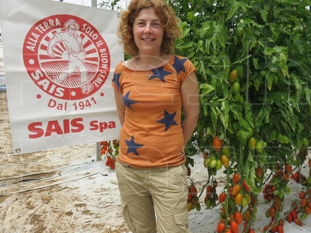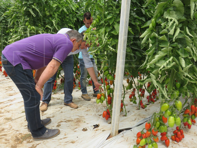 "Una serra sperimentale in contrada Alcerito, a Vittoria. Qui, le mani sapienti di Daniele Rizzo hanno messo a dimora le piantine di nuove varieta' di "pomodoro allungato" prodotte dall'azienda sementiera SAIS. Le nuove cultivar hanno risposto bene alle attese e, nella giornata del 26 maggio 2016, sono state presentate ai visitatori. L'arrivo di alcuni agricoltori, accolti da Simona Toloni (product manager SAIS)."