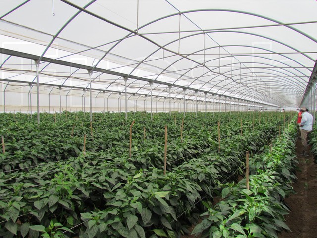 La produzione locale avviene tra gli 80 e i 100 ettari, oltre ai 20 ettari di proprieta', tutti in coltura protetta. In foto: serra di peperoni Balzac.