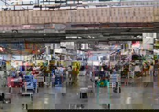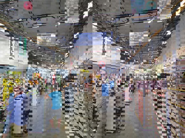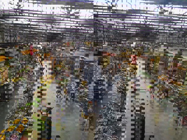 Alle 8:30 del mattino, si respira una calma serafica. Presto verra' esposta, nelle corsie, tutta la merce scaricata.