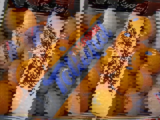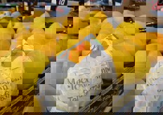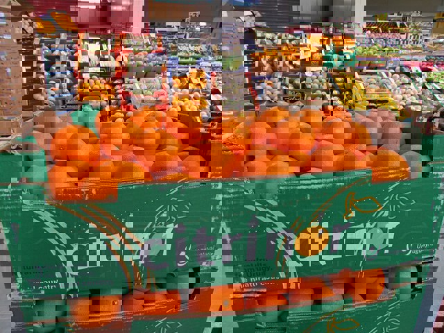 Da extra Europa la coloratissima frutta esotica - mango, papaya, lime, alchechengi, avocado per citarne alcuni - spicca sul resto ma disponibili anche agrumi, limoni (pochi!), meloni, banane. In foto: arance sudafricane.