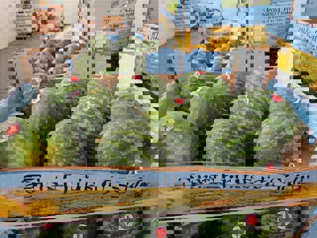 Al momento, come confermato da alcuni grossisti spagnoli, dall'Italia arrivano al Mercabarna mele, meloni, angurie, uva da tavola, piccoli frutti e qualche partita di pomodoro. In foto: angurie siciliane.