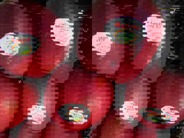 "Iniziativa promozionale. "No importa como te llames, ahora tu manzana Livinda se llama como tú (Non importa quale sia il tuo nome, ora le mele Livinda si chiamano come te)!"."