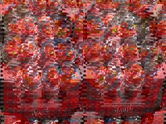 ...ma anche succhi a base di melagrane coltivate in Spagna, gazpacho andaluso e pesche sciroppate intere.