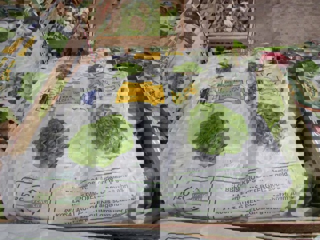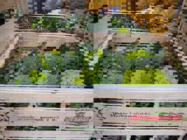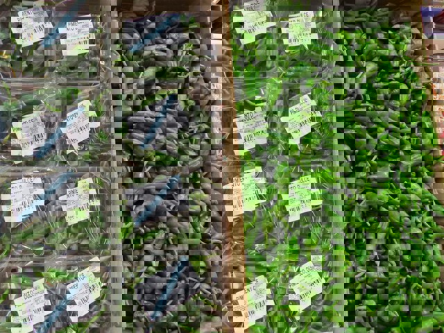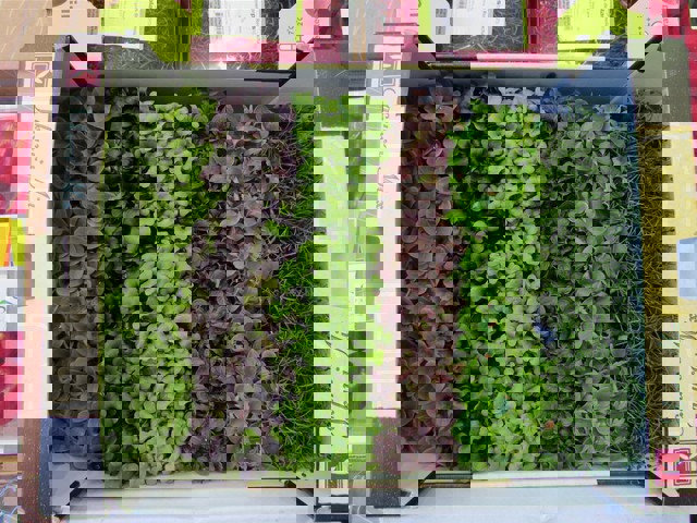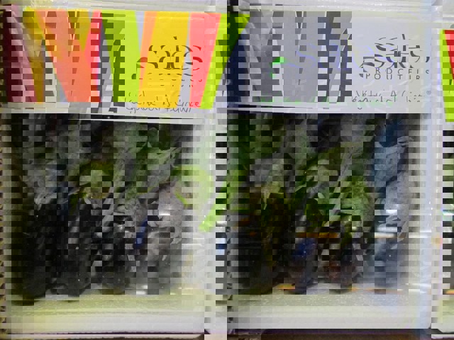 Presenti in qualche box anche insalate di IV gamma di origine italiana. In foto: rucola a marchio Mioorto.