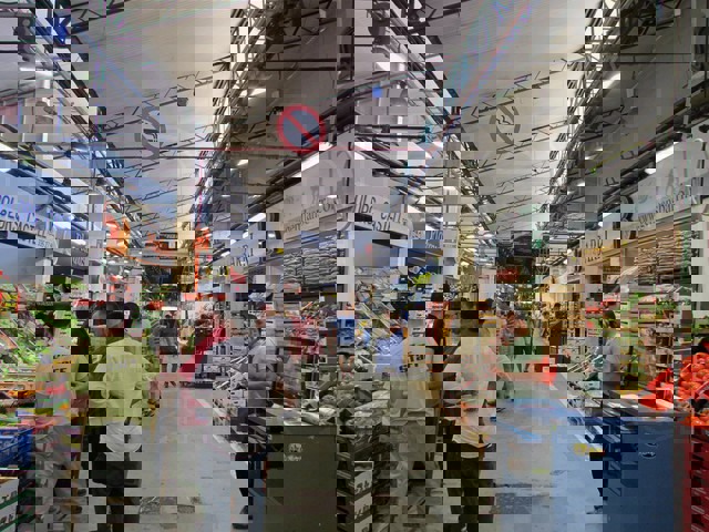 Sette i padiglioni dedicati alla vendita all'ingrosso di frutta e verdura, dal padiglione A al G.