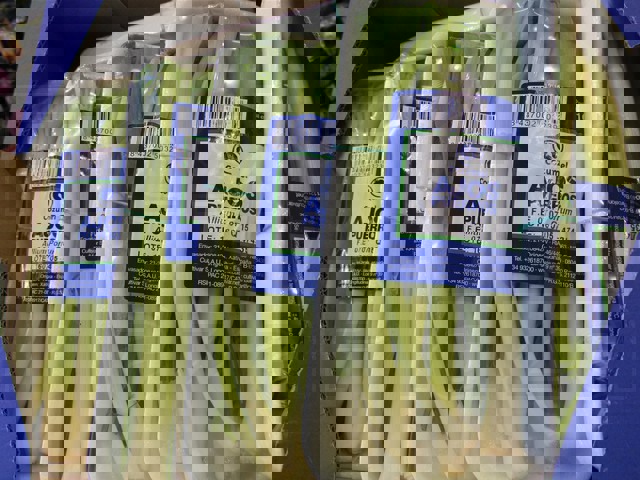 "La esencia de brocoli": broccoli di origine spagnola, confezionati in vassoio filmato, con ricetta suggerita, diversa da pack a pack."