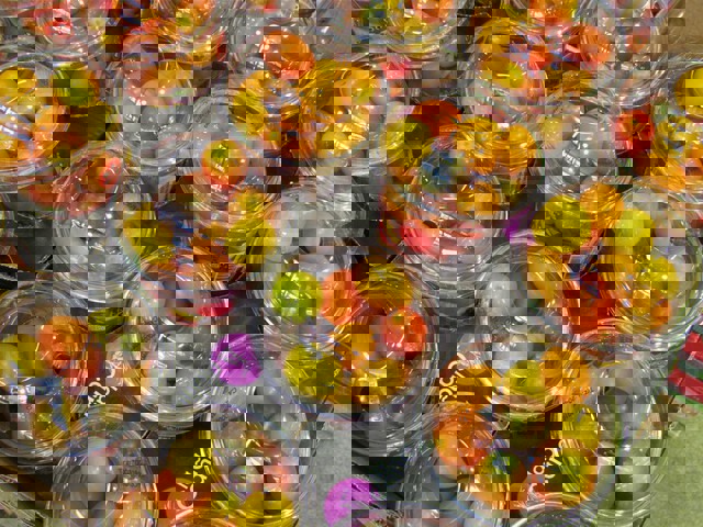 Bicchieri di pomodori ciliegino di origine spagnola.