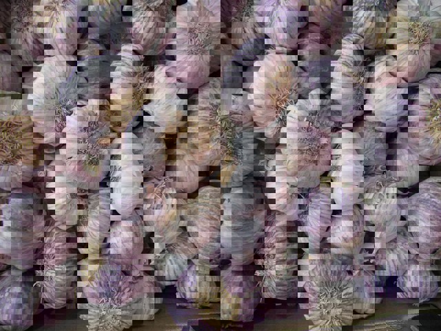 Aglio fresco pelato originario della Spagna, in confezione da 1 kg.