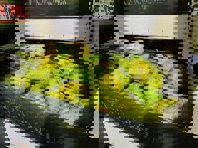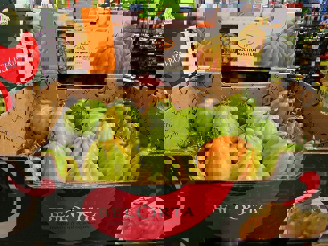 La stragrande maggioranza dei prodotti disponibili nei diversi box e' di provenienza spagnola. In foto meloni Piel de sapo.