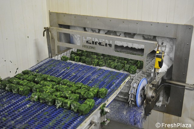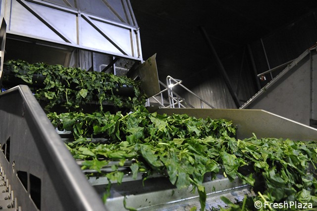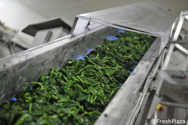 Spinaci in lavorazione prima della surgelazione.