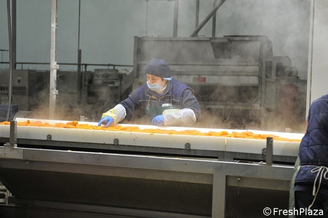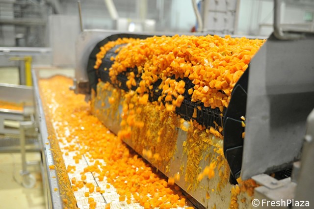 Carote cotte e cubettate prima della surgelazione.