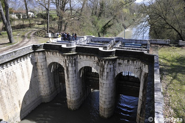 La bonifica del Fucino è un'opera di alta ingegneria, iniziata dai Romani. Qui il canale collettore confluisce nel canale sotterraneo di epoca romana e permette di mantenere all'asciutto le terre strappate all'ex lago.
