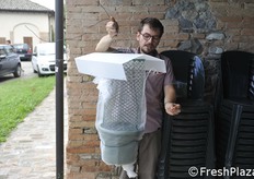 Giacomo Vaccari mostra la trappola.