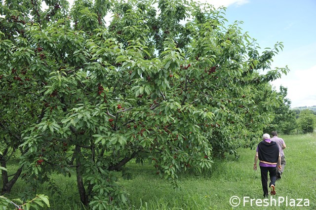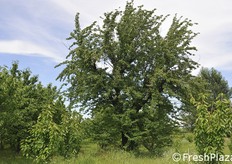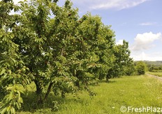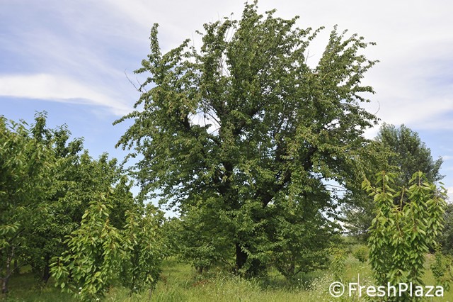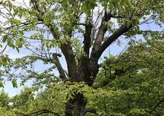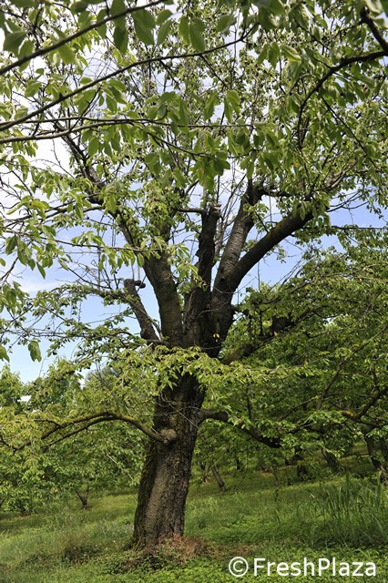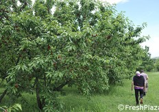 Un ceraseto biologico. Con il meteo del 2018, con tanta pioggia, la monilia ha attaccato tutti i frutti o quasi.