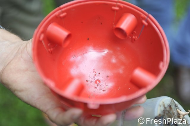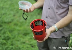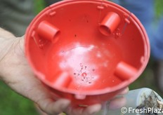 Trappola per la cattura di Drosophila. L'esca è un mix contenente anche aceto e vino