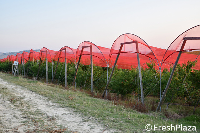 Reti fotoselettive sugli impianti. Installati tre anni fa, stanno dando risultati in termini di colorazione dei frutti e sviluppo del profilo aromatico.