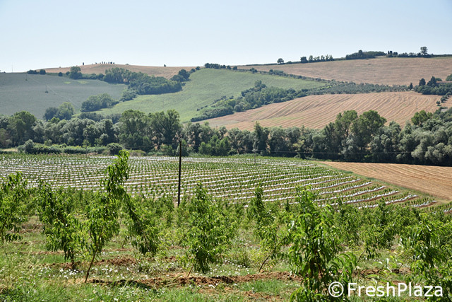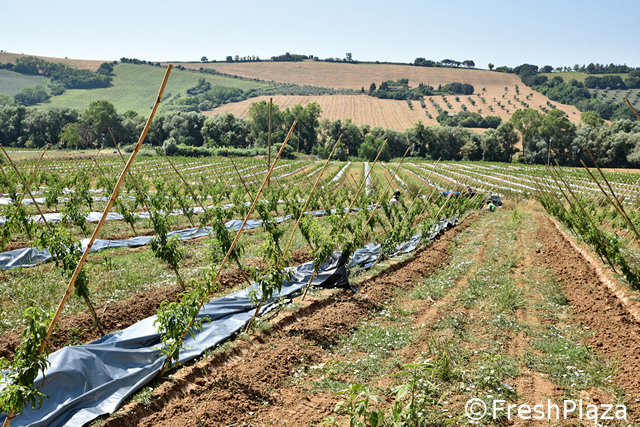 Qui e nelle foto seguenti, il nuovo impianto di oltre 20 ettari realizzato in provincia di Macerata con tecniche avanzate.