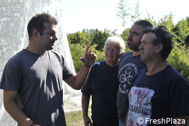 Il tecnico parla con alcuni agricoltori andati in visita il 4 settembre 2018