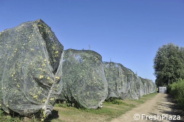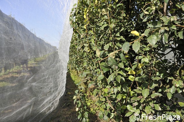 Trenta ettari di pero biologico rendono come 900 a seminativo, grano per la precisione. La Cab Massari di Conselice (Ravenna) conta 2400 ettari in totale. Le reti monofila permettono di abbattere i costi e salvare la produzione ottenendo alta Plv. (Fotoservizio a cura di Cristiano Riciputi)