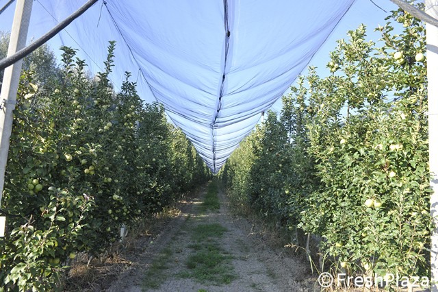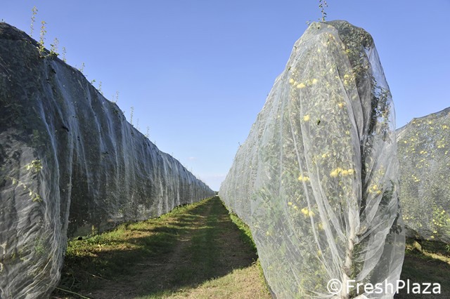 La cooperativa ha protetto anche i meli. Grazie alle reti la conduzione bio è molto facilitata