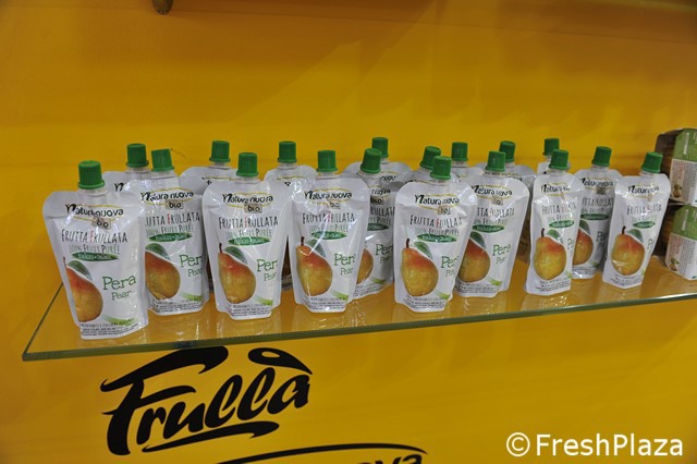 Frutta frullata e in confezioni adatte sia per gli sportivi, sia per chi intende tenerla in borsa per merenda.