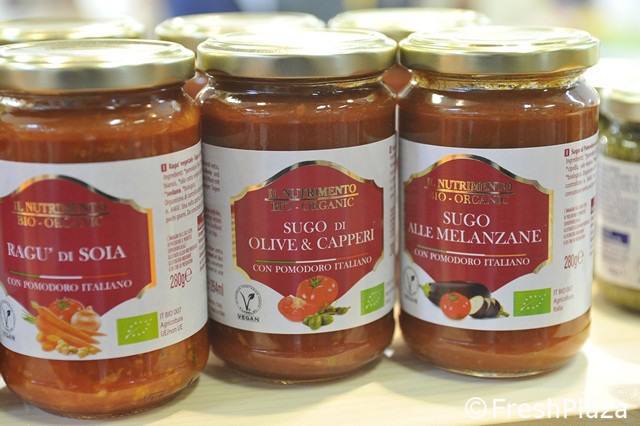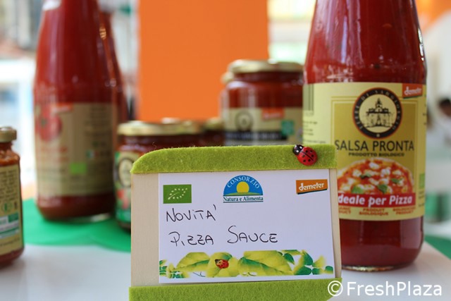 Tra le curiosita' in fiera, la salsa pronta a marchio Terre di Sangiorgio, ideale per pizza.