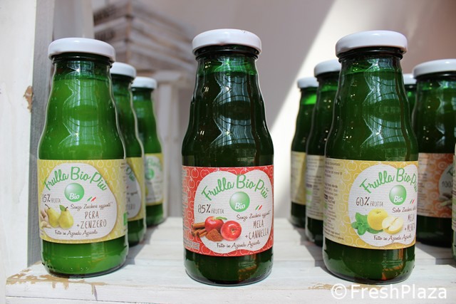 La gamma di succhi che l'azienda ha proposto in fiera.