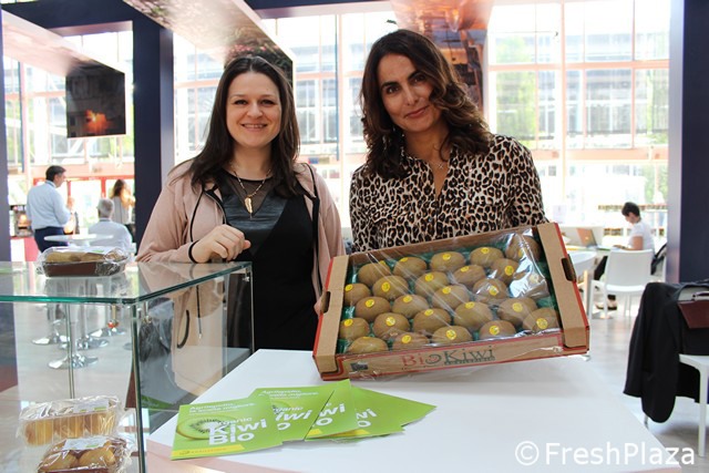 Francesca Ferrera e Daniela Lepidio della Agrilepio, produttrice di kiwi. L'azienda, alla prima partecipazione al Sana, sta puntando sempre piu' sulla produzione biologica.