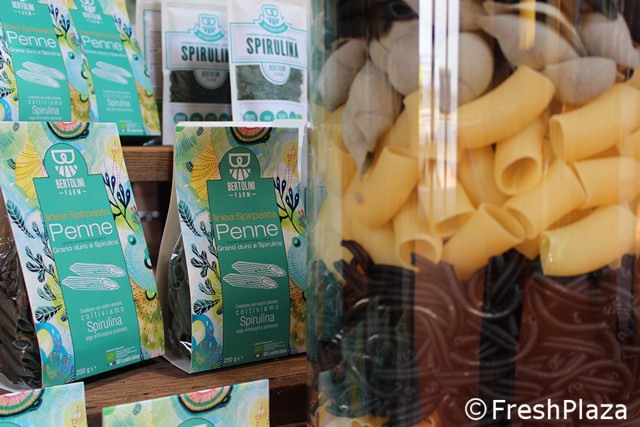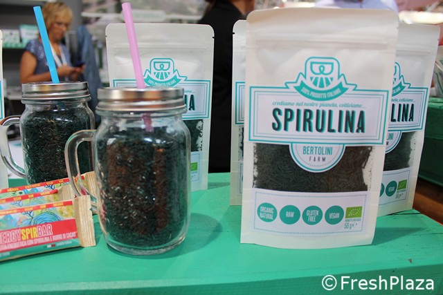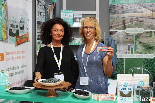 Presso lo stand della Bertolini Farm, Caterina Arena e Isabella Silvestri ci hanno illustrato le novita' a base di spirulina presentate in fiera.