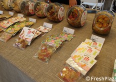 Frutta - prevalentemente di produzione propria o proveniente da aziende locali - disidratata e confezionata.