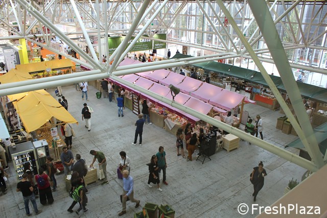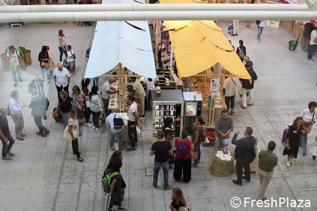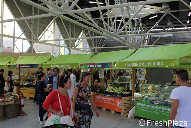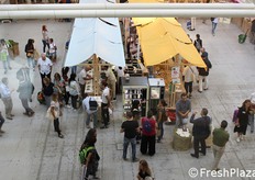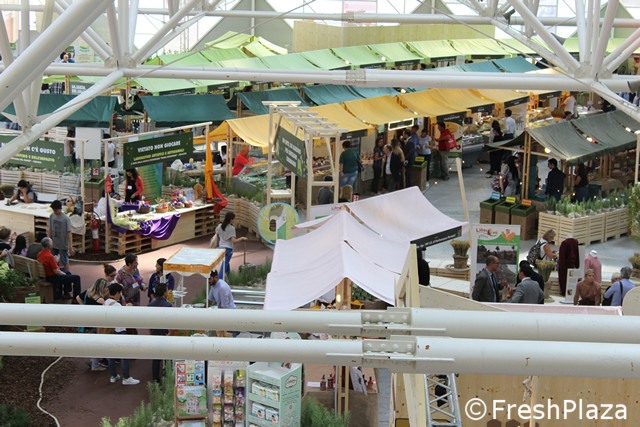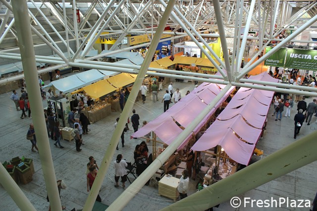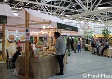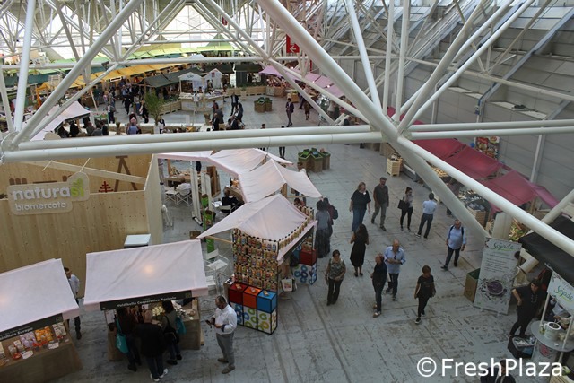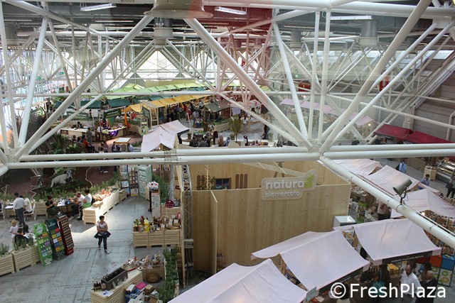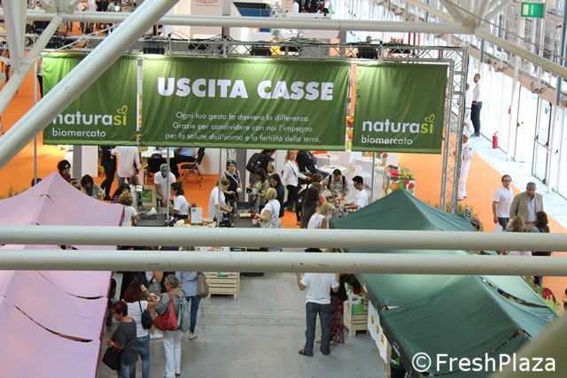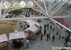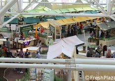Tanti piccoli stand di aziende italiane ed estere per il biomercato di NaturaSi'.