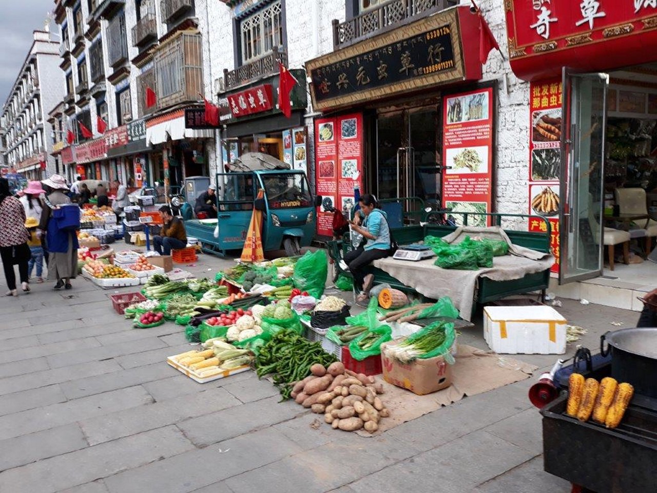 Il mercato ortofrutticolo locale è ubicato nella zona musulmana di Lhasa.