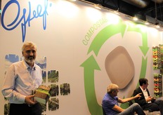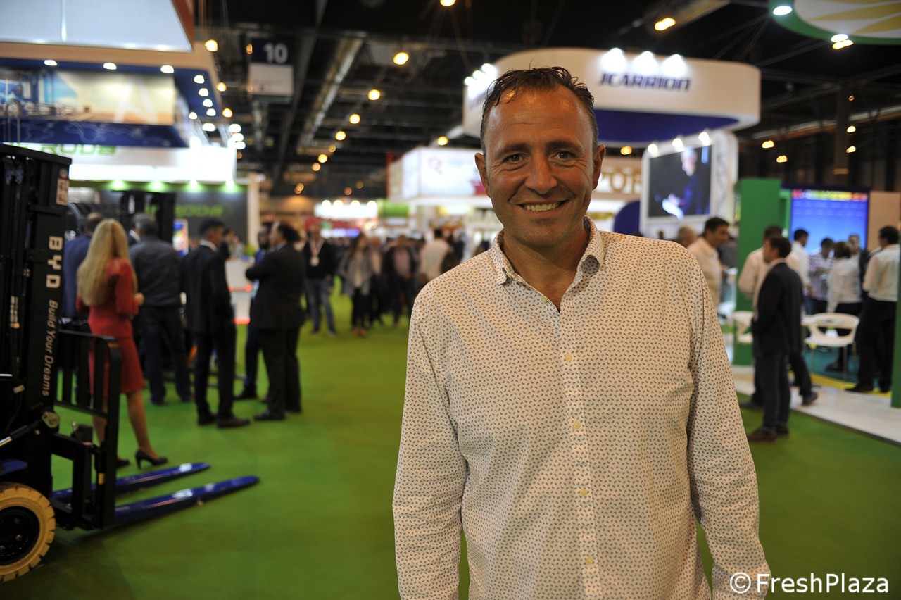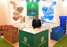 Paolo Caiazzo, direttore commerciale di Plastica Sud. L'azienda ha presentato a Madrid due nuovi prodotti brevettati, dedicati al mondo dell'ortofrutta: la cassa impilabile modello Milleusi+ (60x40h24) e una novità assoluta, la cassa a pareti abbattibili modello Twist Box (60x40) nella doppia versione con altezza da 19 e 23 cm.