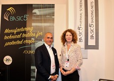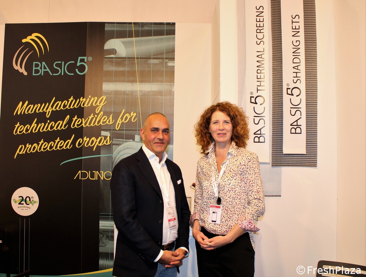 Daniele Airoldi (sales and marketing manager) ed Elisabetta Pircher (corporate identity manager) dell'azienda milanese Aduno Srl, specializzata in tessuti tecnici per colture protette del settore ortoflorovivaistico.