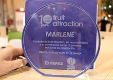 Le aziende presenti dal primo anno di Fruit Attraction, come VOG-Marlene, per la decima edizione hanno ricevuto un riconoscimento. Subito dopo la consegna, una foto di gruppo è un plus!