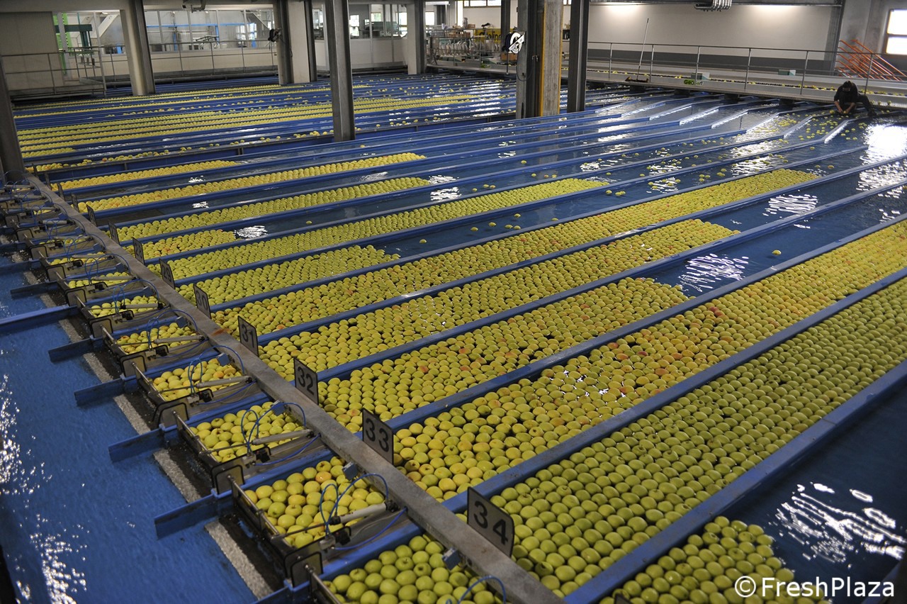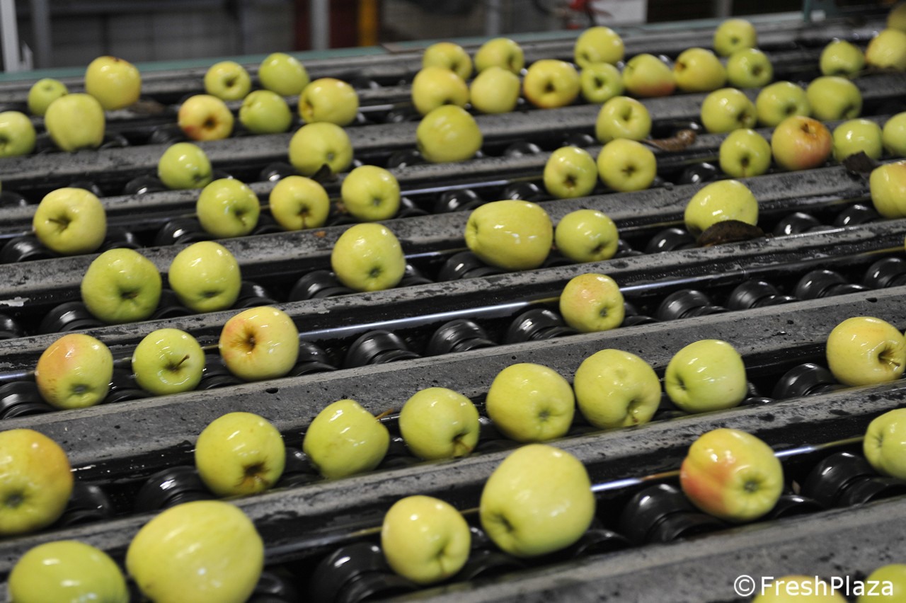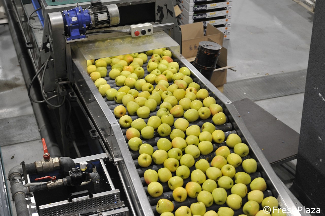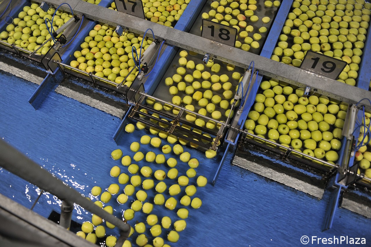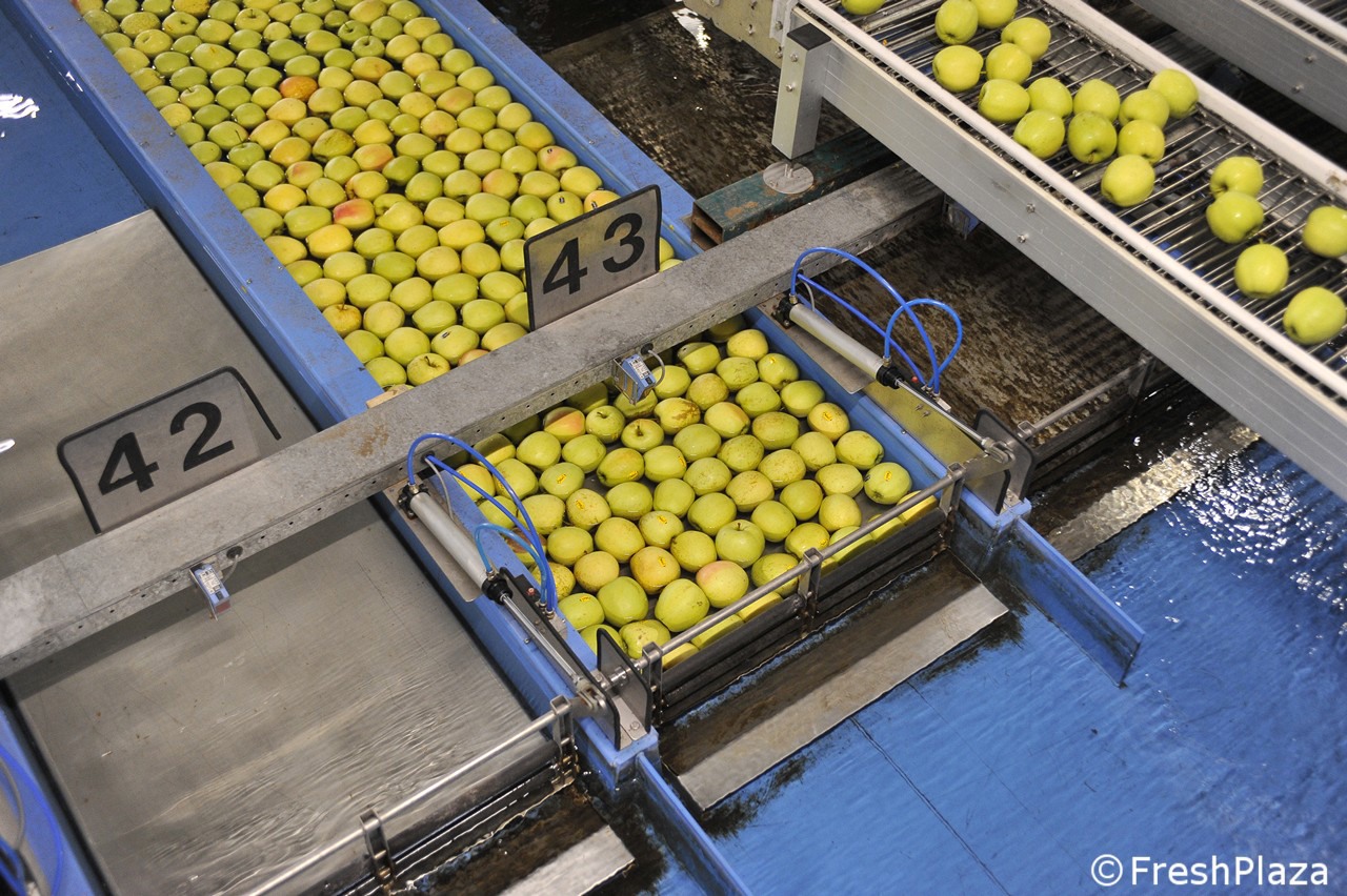 Una delle corsie con le mele selezionate per calibro